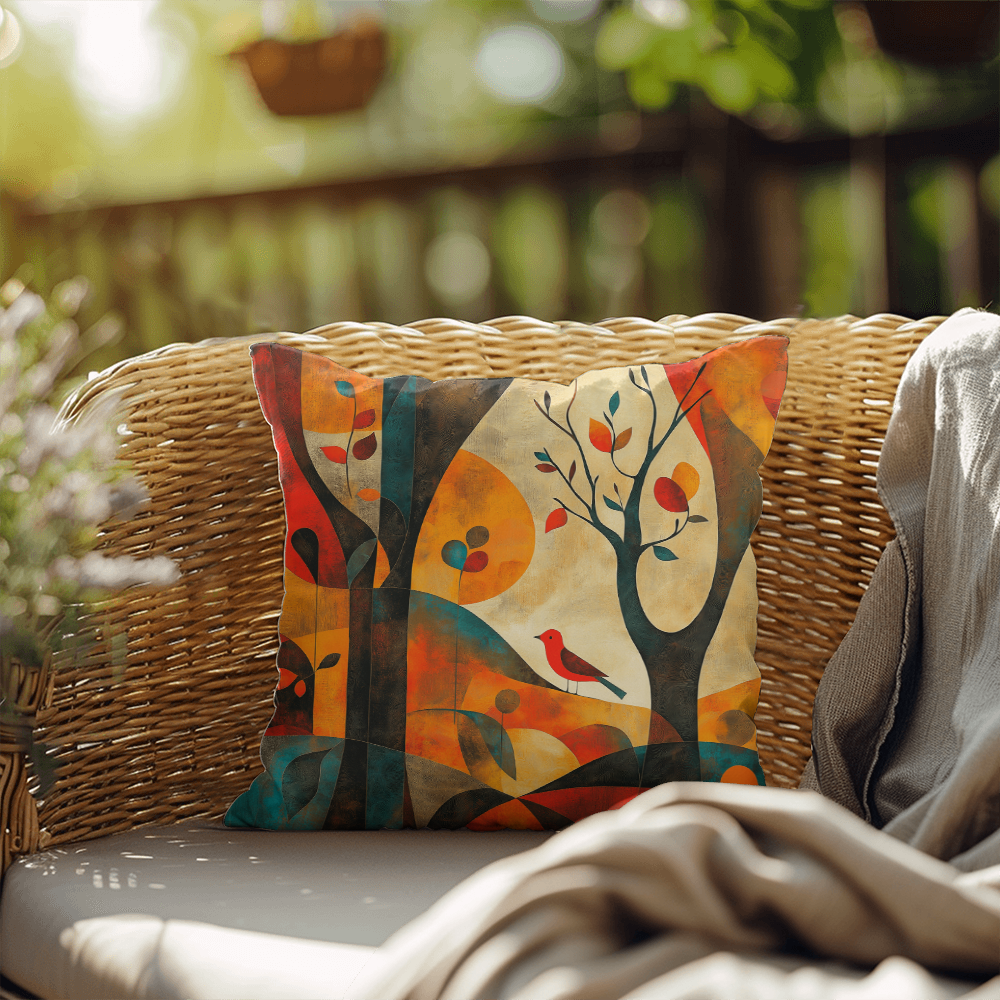 Transform your living space with the Autumn Forest Abstract Throw Pillow – Red Bird & Foliage Design. This beautifully crafted pillow is not just a decorative accessory; it’s an invitation to cozy comfort and stylish aesthetics. Designed for both indoor and outdoor use, it adds a pop of color and artistic flair to your home or patio.