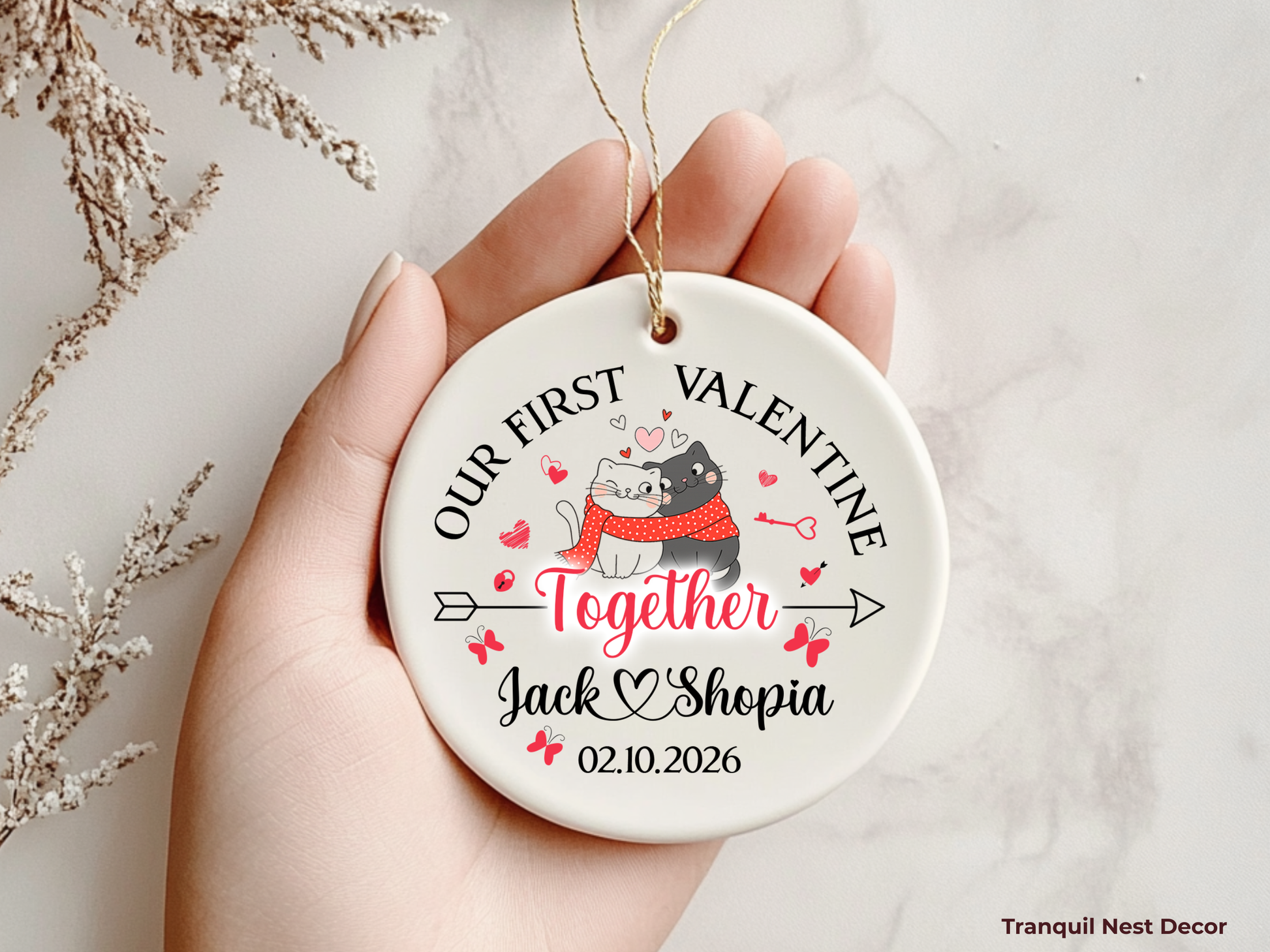 This Valentine’s Day ornament is a thoughtful gift you won’t find in stores. Designed as a personalized Valentine keepsake, it can be customized with names or dates to celebrate your love story. A romantic Valentine ornament created to be gifted, cherished, and remembered long after the season ends.