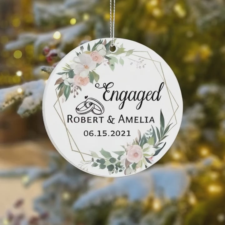 Engaged Personalized Acrylic Ornament 2025 – Custom Engagement Ornament with Floral Design, Romantic Couple Gift Keepsake