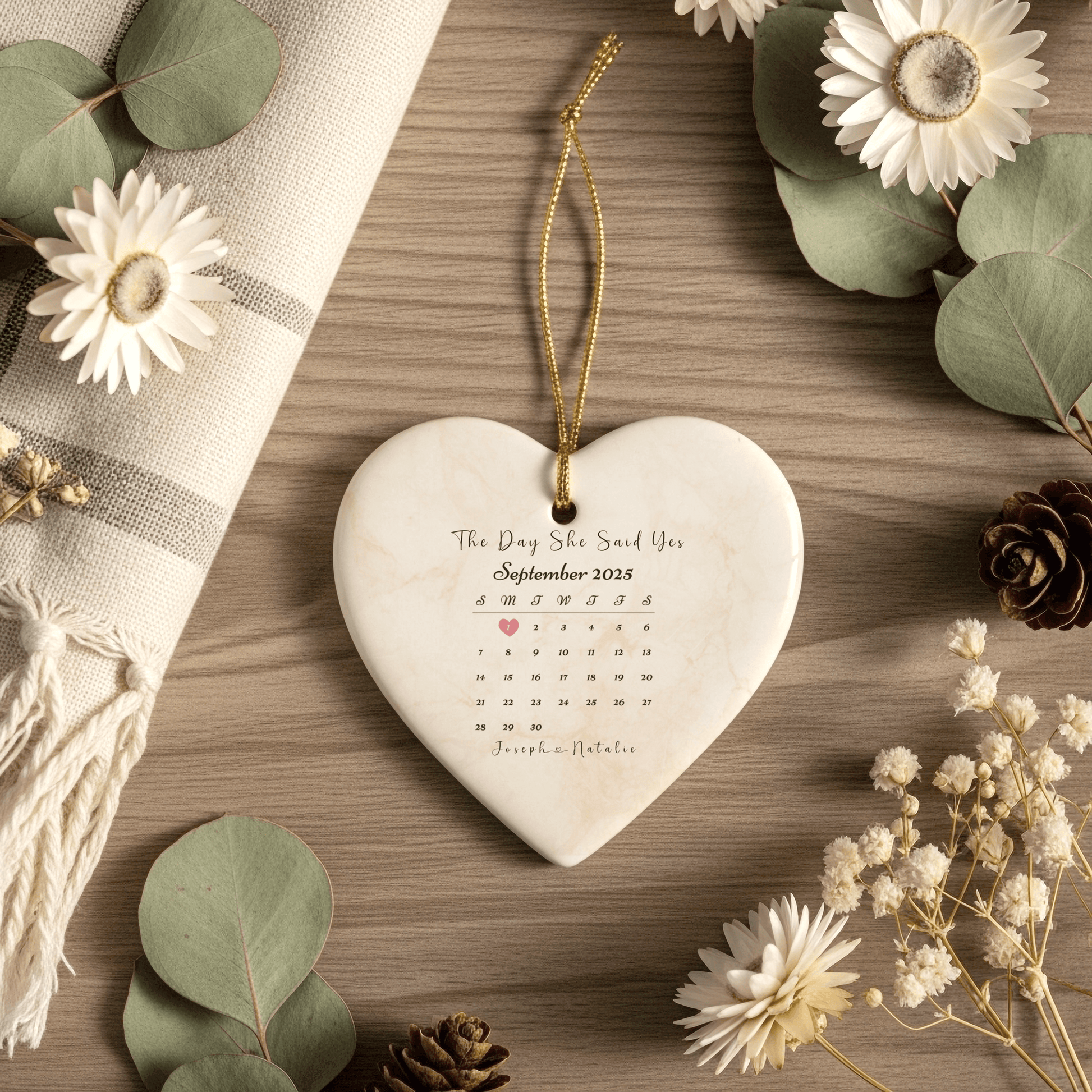Celebrate the magic of your love story with this Personalized Engagement Ornament. Each ornament beautifully captures the moment he asked and she said yes, turning it into a keepsake you’ll cherish forever.