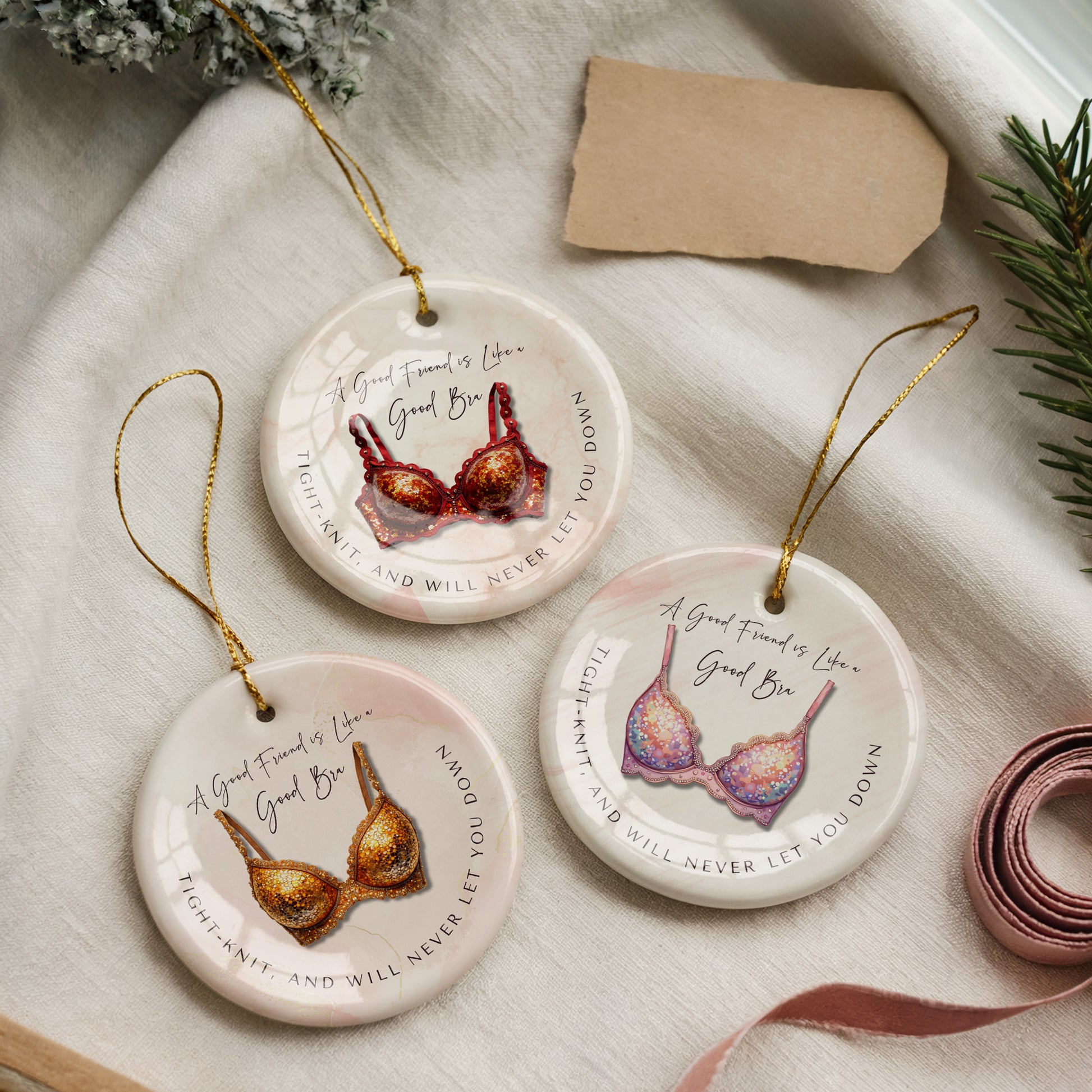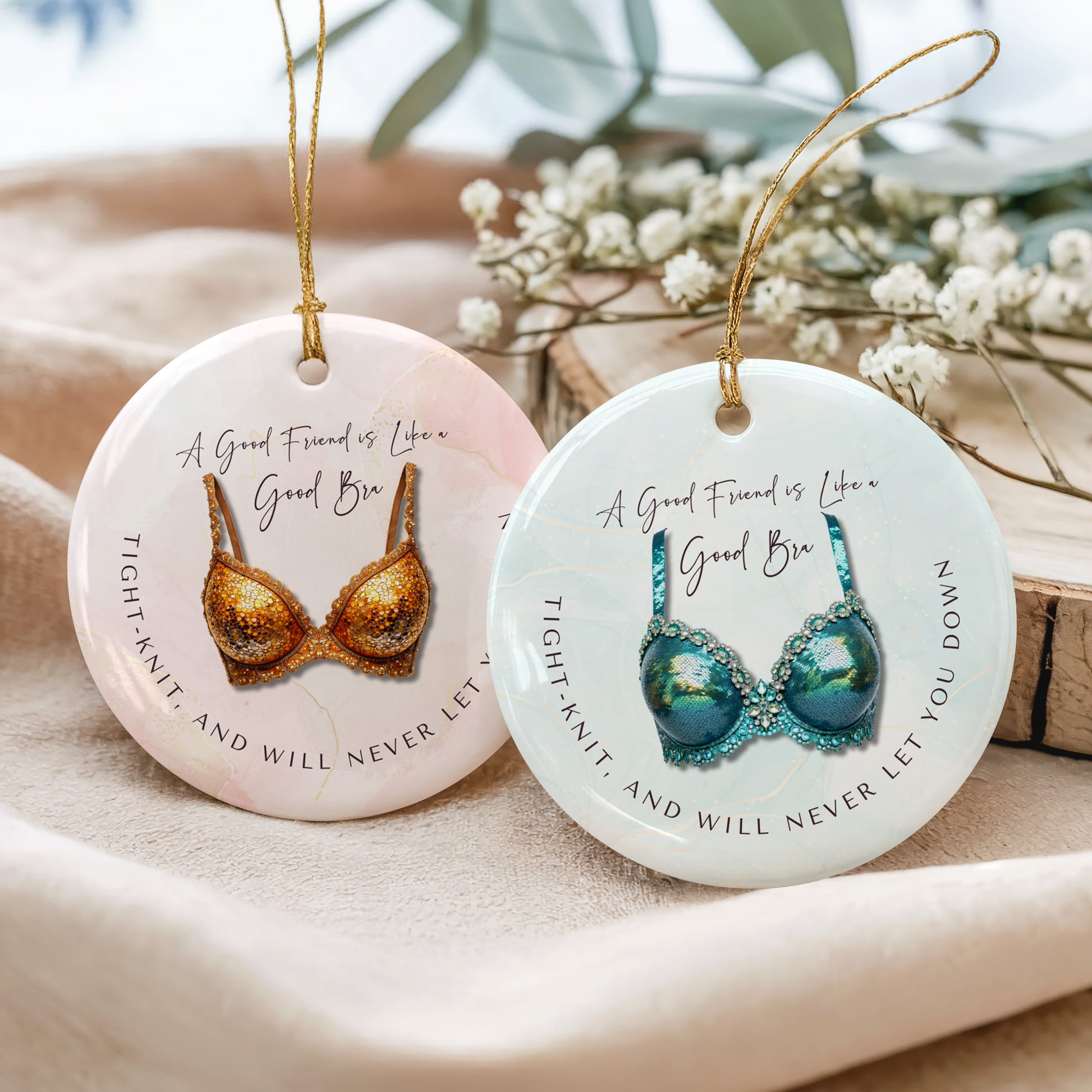 Funny Friendship Ornament – “A Good Friend is Like a Good Bra” – Tight-Knit Best Friend Christmas Ornament – Humorous Gift for Women