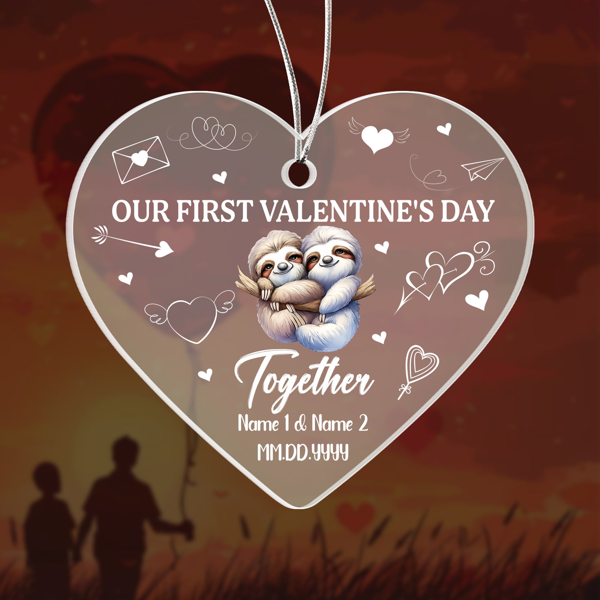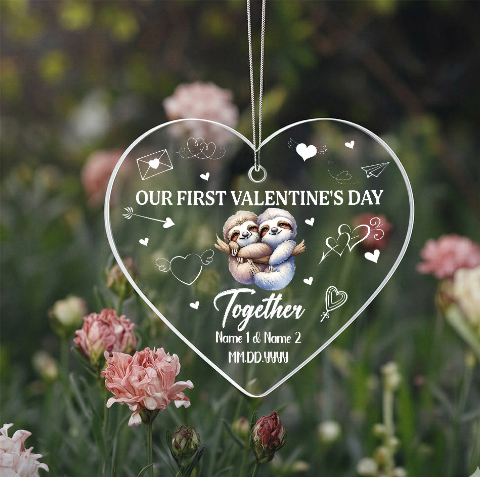 Personalized Acrylic Heart Ornament – Our First Valentine’s Day Gift for Couples, Custom Name & Date Love Keepsake