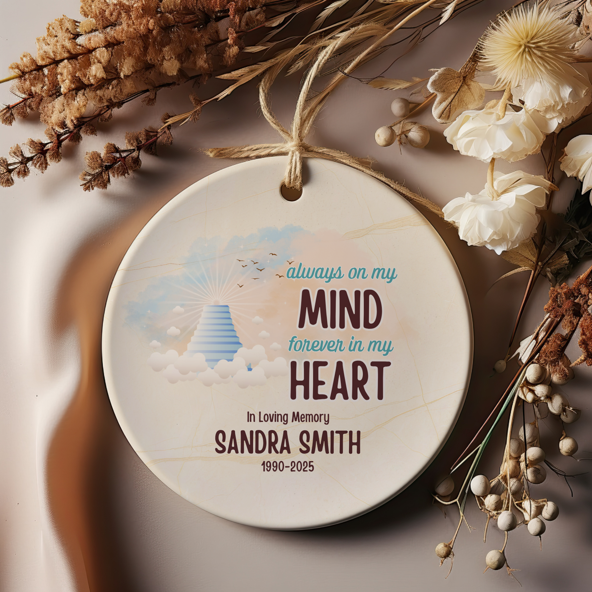 Personalized Memorial Ornament – “Always on My Mind, Forever in My Heart” – In Loving Memory Keepsake – Sympathy Gift for Loss