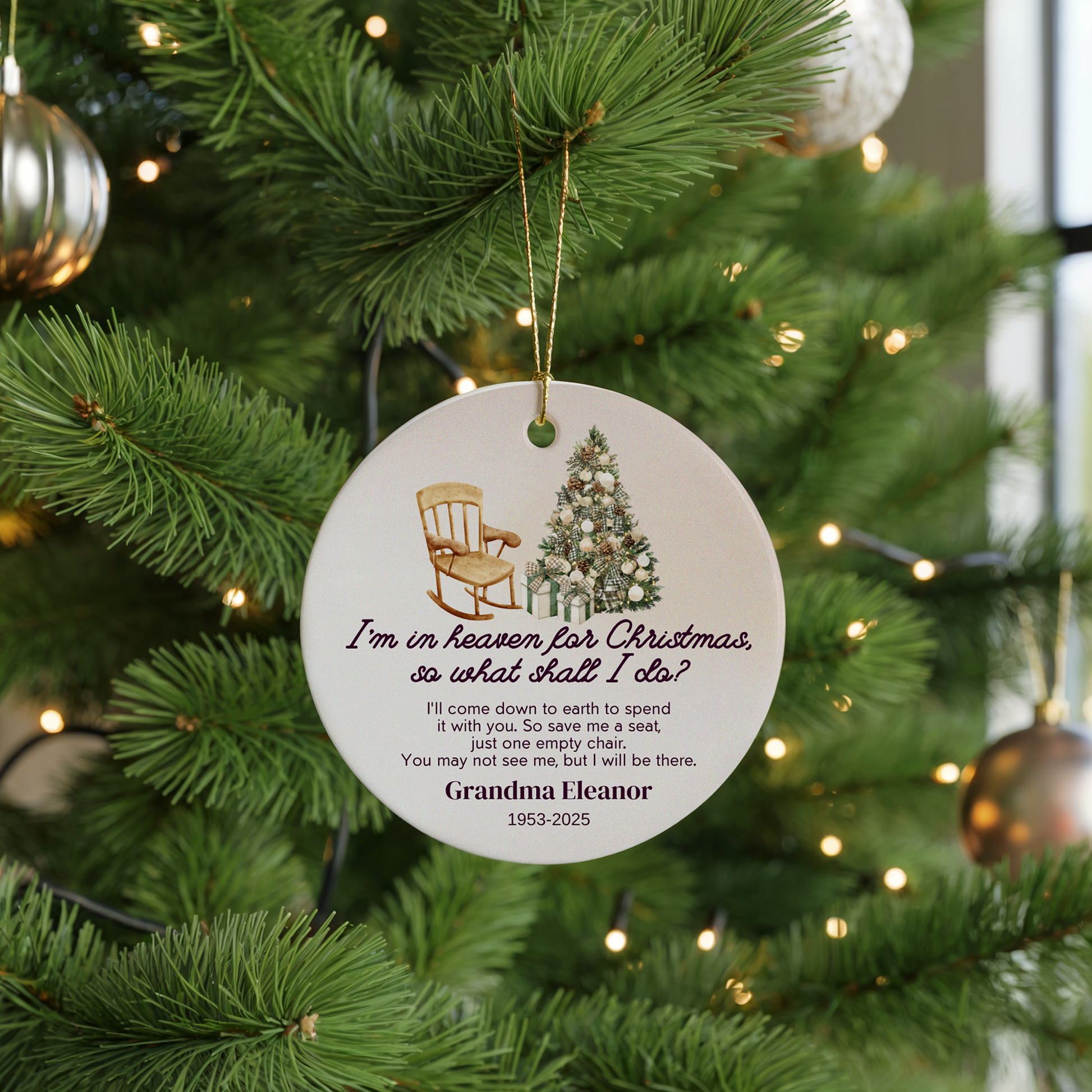 Personalized Memorial Ornament – “I’m in Heaven for Christmas” Custom Remembrance Ornament – In Loving Memory Keepsake Gift for Loss of Loved One