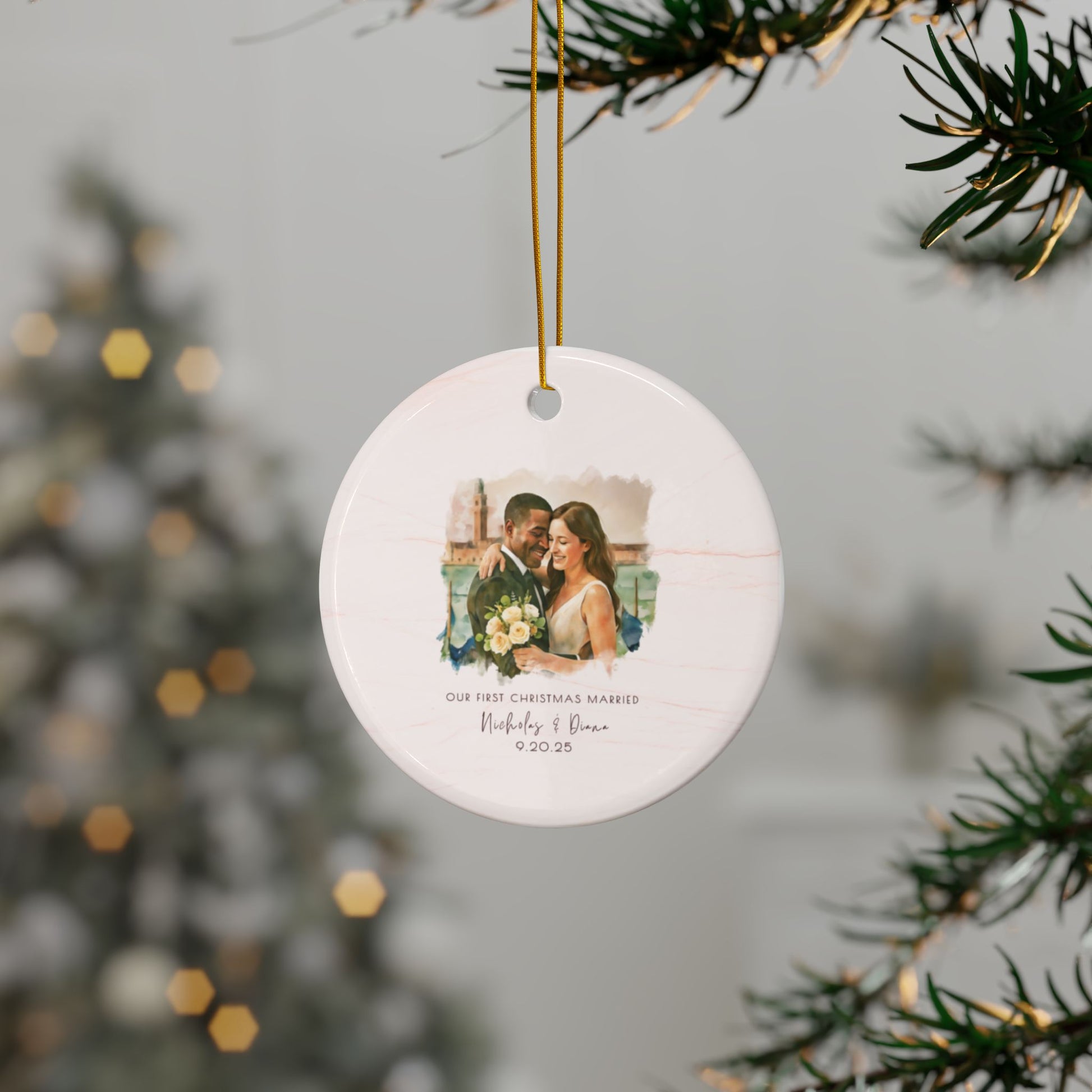 Personalized Wedding Ornament – Custom Photo & Wedding Date Calendar Keepsake – Our First Christmas Married Gift